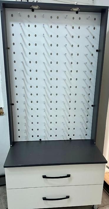 Mağaza mebeli və vitrin seti - Material: laminat/taxta karkas, şüşə