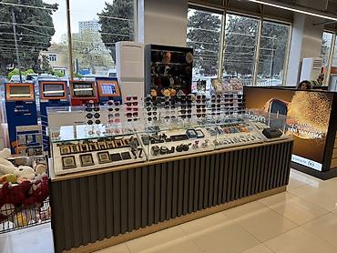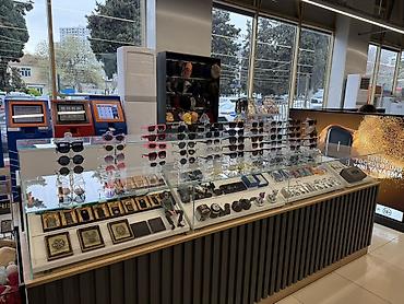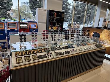 Satışda – aksesuar vitrini və müxtəlif hədiyyəlik əşyalar Məhsul çeşidləri: - Gözlük və gün eynəkləri: qadın, kişi və uşaq modelləri; klassik, dəyirmi, kvadrat, rəngli çərçivələr; tünd və açıq lin...