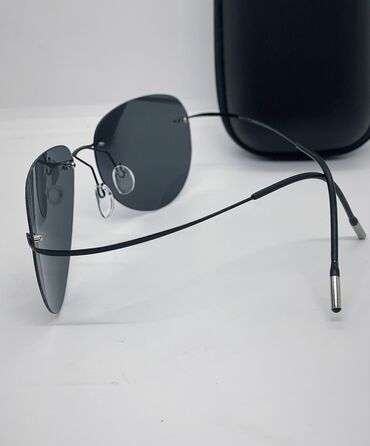 Qara rəngli çərçivəsiz dizayna malik unisex günəş eynəyi. Düzbucaqlı