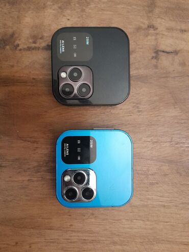 - Kompakt kvadrat dizayn, qapaqlı korpus; iki rəng: qara və mavi