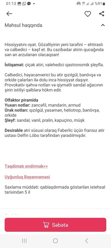 Faberlic Desirable qadın ətiri - Növ: çiçək ətiri, valehedici