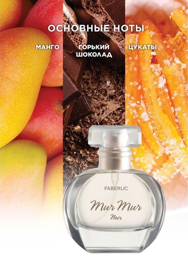 Faberlic Mur Mur – qadınlar üçün eau de parfum - Qoxu profili: şirin-gurme, meyvəli-şokoladlı. - Üst notlar: şirəli manqo və tropik meyvələr. - Ürək notları: kremli südlü/poroz şokolad nüansları, ...