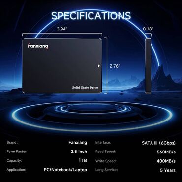 1 TBFanxiang S101 1TB SSD SATA III 6Gb/s 2.5" SSD Solid State Disk Daxili Sərt Disklər Kompüter ve Noutbuklar üçün: