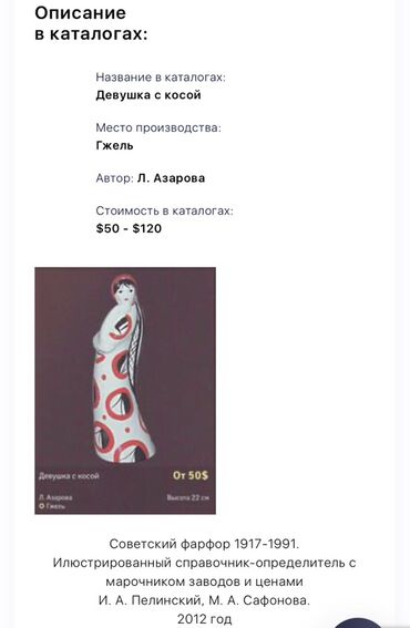 Это редкая фарфоровая статуэтка «Девушка с косой» Гжельского фарфорового завода.