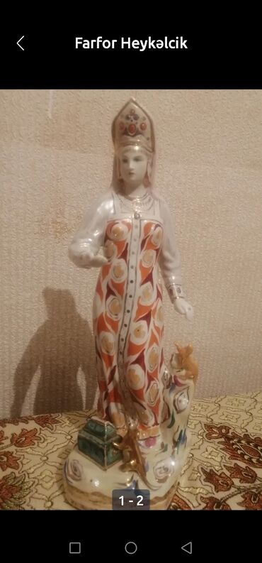 Mövzu: Koleksiya üçün dekorativ porselen fiqurlar və divar qabı Təsvir: - Rəngarəng porselen fiqur kolleksiyası. Müxtəlif mövzular və ölçülər. - Rəqs edən cütlük kompozisiyası: oturan musiqiçi və ...