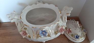 Porcelan dekorativ vaza/kompozisiya - Material: yüksək keyfiyyətli porselen - Üslub: klassik, barokko motivləri ilə - Rənglər: ağ əsas, pastel çalarlı çiçək aplikasiyaları (açıq yaşıl, bənövşəyi, ...