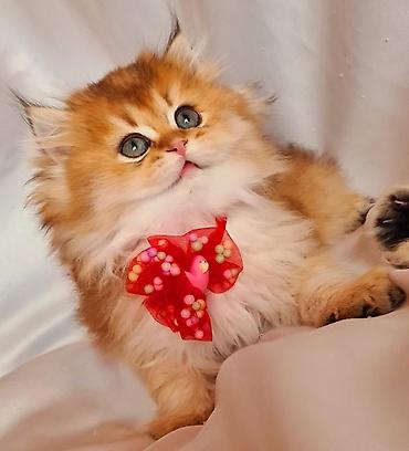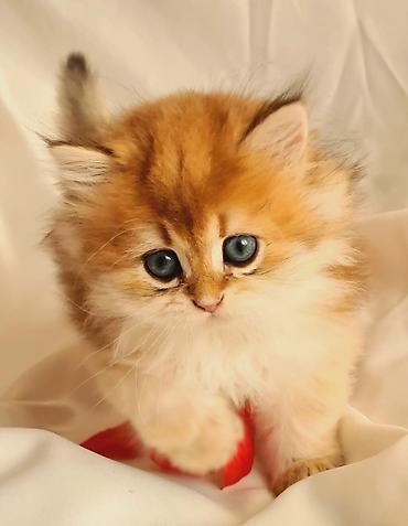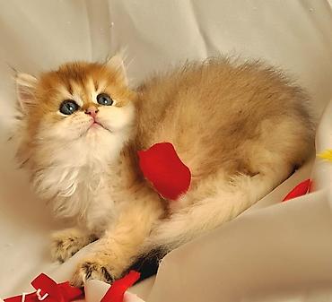 Britan tipli qısa tüklü balaca pişik balası - Rəng: qızılı–şabalıdı (golden), qarın və pəncələrdə açıq krem tonları - Gözlər: böyük, dairəvi, mavi-boz çalar - Tüklər: yumşaq, sıx, pofuduk tekstura...