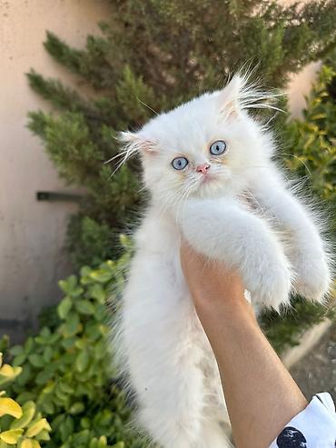 Persian balası – uzun tüklü, yumşaq və sıx kürkə malik ev pişiyi - Rənglər: krem-ağ, boz-krem və ağ çalarlar (bir neçə fərqli balaca mövcuddur) - Gözlər: açıq mavi/yaşılmtıl-mavi tonlarda, iri və i...