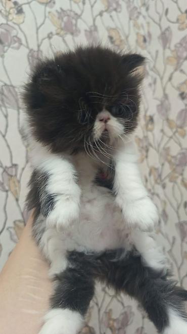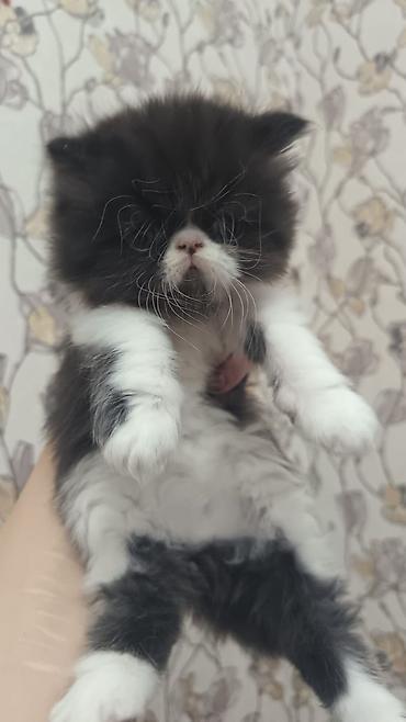 Persian pişik balaları – uzun tüklü, yastı burunlu, iri ifadəli gözlərlə ev şəraitində böyüdülmüş balalar. Rənglər: qara-ağ, üçrəng (calico) və qara-ağ müxtəlif naxışlarla. Yumşaq, sıx yun örtüyü, qısa pəncələr və dolğun bədən quruluşu ilə tipik show‑type görünüş.
