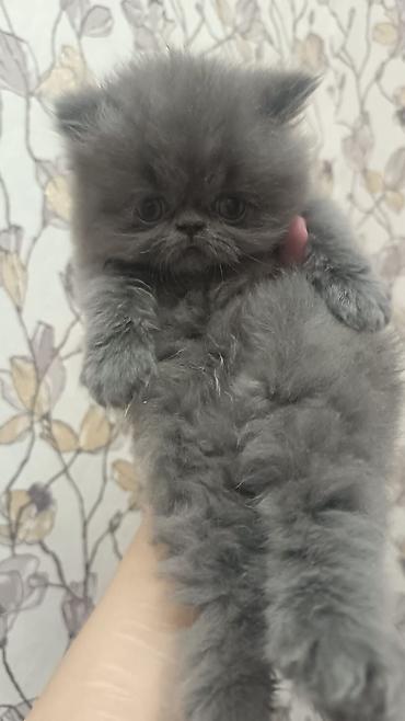 Boz tüklü balaca pişik balası - Cinsə bənzər görünüş: tünd-boz, qısa və sıx yunlu, yumru sifət və iri gözlər - Yaş qrupu: körpə (şəkillərdə aydın görünür) - Xarakter: mehriban, qucağı sevən, sakit...