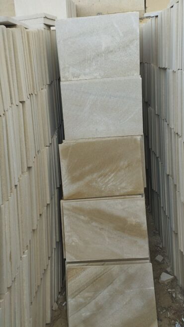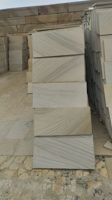 - Material: təbii daş (kül rəngi bazalt/qranit görünüşlü, bej və qumlu naxışlı variantlar)
