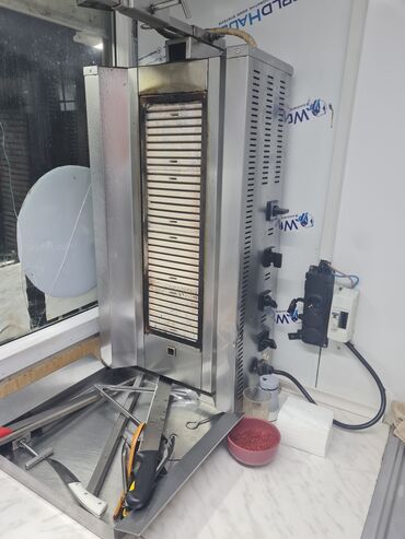 Qiymətdə razılaşmaq olar: Kabab və sendviç hazırlığı üçün peşəkar avadanlıq dəsti. - Şaquli dönər/kebab aparatı: paslanmayan poladdan korpus, ət şişi üçün mərkəzi ox, alov/istilik blokuna qarşı is...