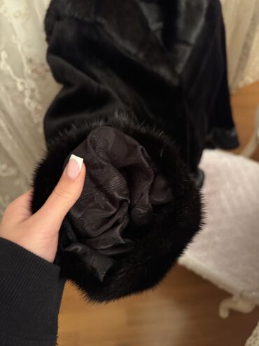Mink kürk palto - Ölçü: S - Mənşə: Yunanıstan - Material: təbii norka (mink) - Rəng: tünd (qara-qəhvəyi ton) - Uzunluq: dizdən bir az aşağı - Dizayn: düz kəsim, gizli düymələmə; yumşaq, həcimli ya...