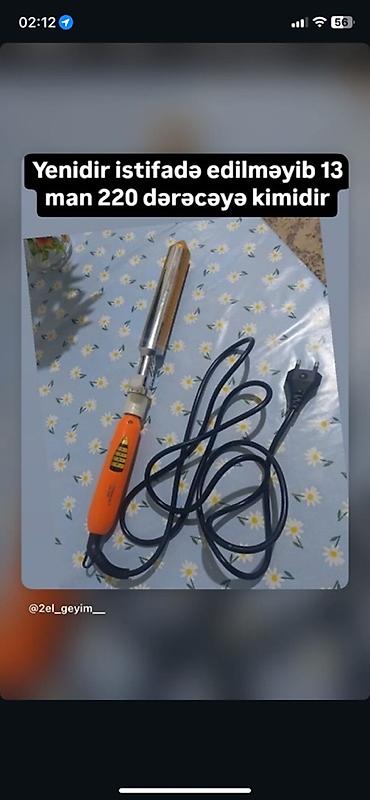 - Su dalğası fen/maşa (triple barrel waver, 25W): Üç silindrli başlıqla təbii su dalğası effekti yaradır, açma/söndürmə düyməsi və indikator işığı var, uzun kabel. Qutusu mövcuddur. Elan mətni: “Su dalğası feni işlənməyib yenidir, 32 azn alınıb, 25 azn satılır”.