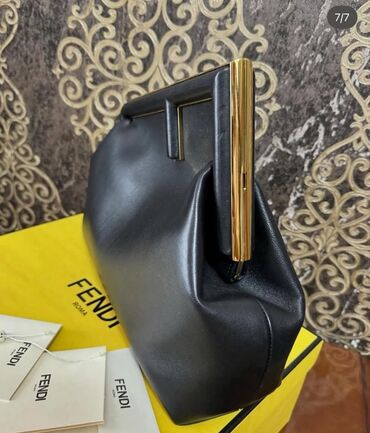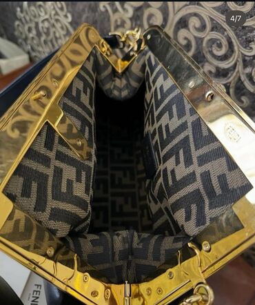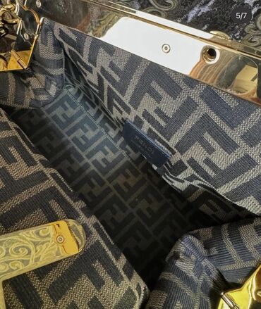 Fendi əl çantası - Rəng: tünd boz/qaranın tonlarında, FF monoqramlı naxış - Material: tekstil parça və hamar dəridən elementlər - Üst hissə: qızılı “FENDI” loqotipi - Tutacaqlar: iki ədəd möhkəm q...