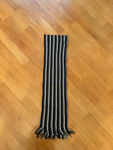 - İnce zolaqlı tünd boz-açıq boz tonlarda fan şərfi, püsküllü uclar.
