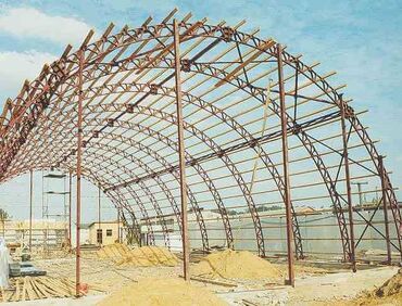 Metall fermalar dam örtüyü üçün konstruksiya dəsti Uzunluğu 8m ,sekkiz eded,her biri 100 azn - Material: polad profil və armaturdan yığılmış ferma konstruksiyaları, üst örtük üçün taxta latalar - ...