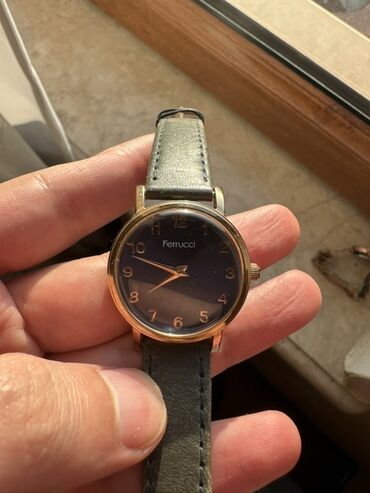 - Siferblat: tünd rəngli siferblat, Ferrucci loqosu, qızılı rəqəmler və akcentli qızılı əqrəblər; minimalistik, oxunaqlı dizayn.