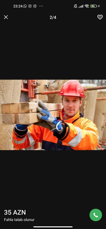 Xidmət: Fəhlə işi axtarıram - Tikinti və təmir sahəsində ümumi fəhlə işləri - Materialların daşınması, sahənin təmizlənməsi, yükləmə-boşaltma - Alətlərin hazırlanması və ustalara kömək - Təhlükəsi...