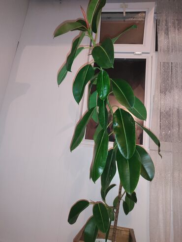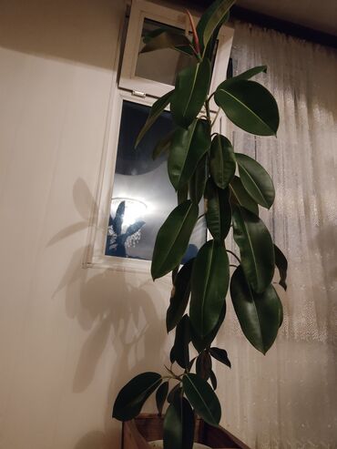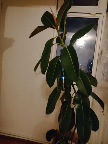 - Növ: Ficus elastica, geniş, parlaq tünd-yaşıl yarpaqları ilə dekorativ həmişəyaşıl