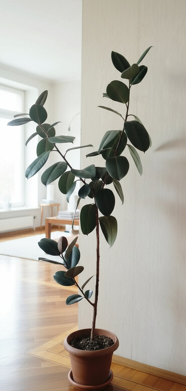 Ficus elastica (rezin ağacı) – iri, parlaq tünd-yaşıl yarpaqları ilə