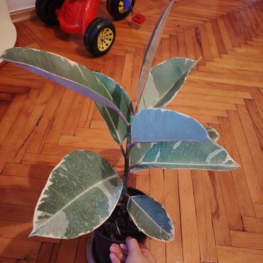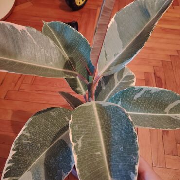 - Növ: Ficus elastica ‘Tineke’ (rəngarəng, krem haşiyəli iri yarpaqlar)
