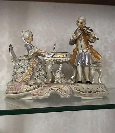 - Kompozisiya: klavesin arxasında oturan xanım və skripka çalan cənab; arada barokko üslubunda klavesin və ayaqları oymalara bənzər konsol; bazada kiçik it fiquru.