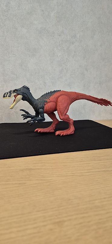 Dino fiquru – detalı və oynaqlı oyuncaq jurassic world mattel original - Növ: yırtıcı dinozavr fiquru (teropod üslubunda) - Rəng: tünd qəhvəyi gövdə, üst hissədə sarı naxışlar, sarı alt çənə və di...