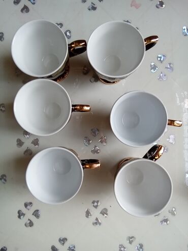 Fincan.Nəlbəkisi yoxdur.kofe üçün.6eded.çoxdan alınıb.idtifade olunmuyub.qrıqı,çatı yoxdur.