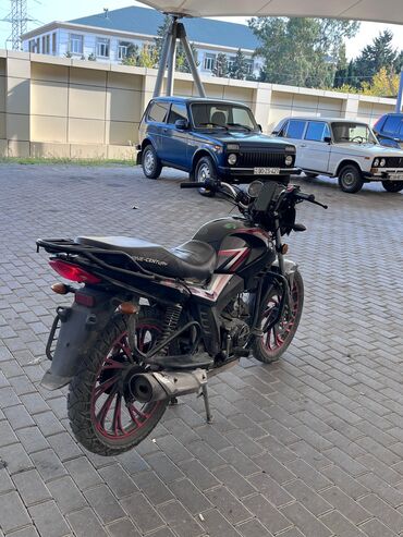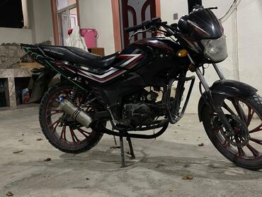 Motosiklet – küçə/naked tipli, qara rəngdə gövdə və qırmızı detallar. Texniki və dizayn xüsusiyyətləri: - Tək silindrli benzin mühərriki (hava ilə soyutma), karbüratorlu. - Ön disk, arxa baraban ə...