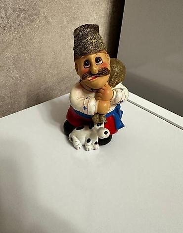 Dekorativ fiqur – qab tutan siçan obrazlı heykəl - Material: möhkəm poliresin korpus, metal (qızılı tonlu) dairəvi boşqab - Rənglər: boz-ağ tonlarda fiqur, tünd kapüşonlu köynək detalı, ağ corab v...