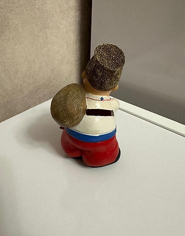 Milli üslubda pul yığan qəfəsgül – heykəl formalı qəpik qutusu.