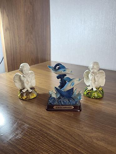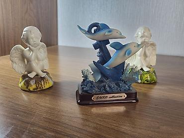 Delfin fiqurları dəsti - 2 ədəd dekorativ fiqur: biri üç delfinin dalğa üzərində kompozisiyası, digəri iki delfinin su şırnağında uçuşu. - Material: polirezin/keramika tərkibli heykəlciklər, detal...
