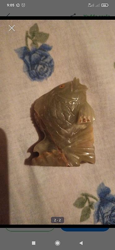 Təbii daşdan oyulmuş balıq fiquru - Material: yarımqiymətli daş (şəffaf-yaşıl tonlarda, işıqda keçiriciliyi var) - Forma: balıq silueti, əl oyma detallarla — pulcuqlar, qanadlar, göz və ağız hissə...Giriş•Qeydiyyat