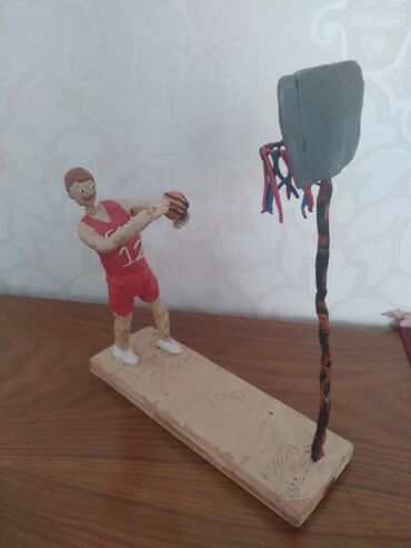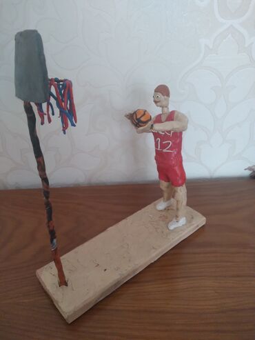 Funko üslublu mini fiqur – basketbolçu temalı - Material: PVC/vinil tipli kolleksiya fiquru - Dizayn: iri başlı, qara saç teksturası, qara qaşlar və gözlər; ikiəlli basketbol topu tutmuş poza - Fo...