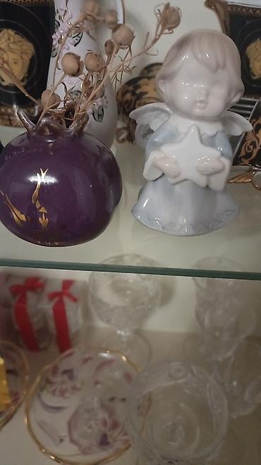 Böyük ölçülü dekorativ kolleksiya üçün keramika fiqurlar dəsti. - Ağ-qonur rəng çalarlarında, əl işinə bənzər parlaq glaurezlı mələk fiquru. Mələk iki əllə ulduz tutur, açıq qanadlıdır, xırda naxı...