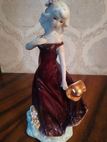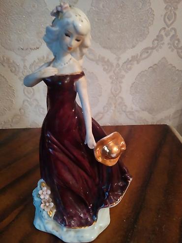 Porselen fiqurlar Bir ədədi 33manat - Material: yüksək parıltılı porselen - Rəng: ağ, incə qızılı konturlar və detallarla - Mövzular: 1) Qadın fiquru – başında tacvari bəzək, əlində dairəvi qalx...