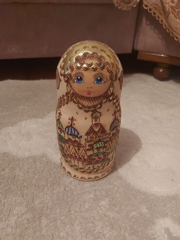 - Dizayn: ən böyük fiqurun üzərində şəhər və məbəd motivləri, hər fiqurda mavi gözlü klassik matryoşka üzü