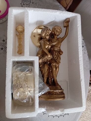 QızılıFiqurlu baza üzərində yerləşən, qızılı rəngli, dekorativ kvars saat. Saatın bazası klassik üslubda dizayn edilmiş, iki fiqur və digər detallarla bəzədilmişdir. Bu saat hər hansı bir interyerə klassik və zərif bir toxunuş əlavə etmək üçün nəzərdə tutulmuşdur. Fiqurun detallı işlənməsi və saatın parlaq qızılı rəngi onu ev, ofis və ya digər məkanlar üçün əla dekorativ əşyaya çevirir. Kvars mexanizmi dəqiq vaxt göstəricisi təmin edir.