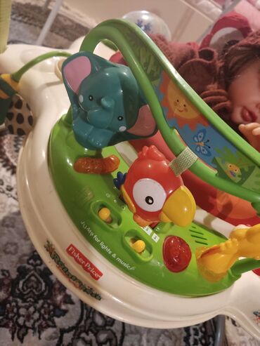 Ev içi istifadə üçün nəzərdə tutulmuş, 6 aydan yuxarı, başını sabit tutan körpələrə uyğundur. Fisher-Price keyfiyyəti və Rainforest mövzulu dizayn.