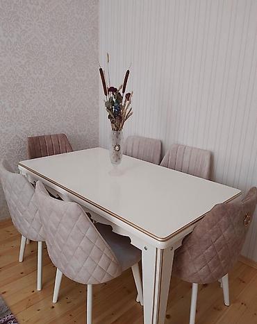Klassik üslubda yemək otağı dəsti Komplekt: - Oval formalı geniş masa + 8 ədəd rahat oturacaqlı, naxışlı bel hissəli stul - Böyük 3 qapılı vitrin (şüşə rəflər, yan şüşə panellər, aşağıda çekmece) ...