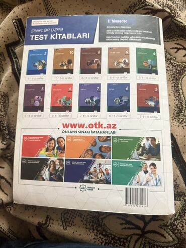 Arxa üzündə siniflər üzrə digər test kitablarına (riyaziyyat, kimya, biologiya, coğrafiya, tarix, ingilis dili və s.) istinadlar və www.otk.az onlayn sınaq imtahanları haqqında məlumat verilir.