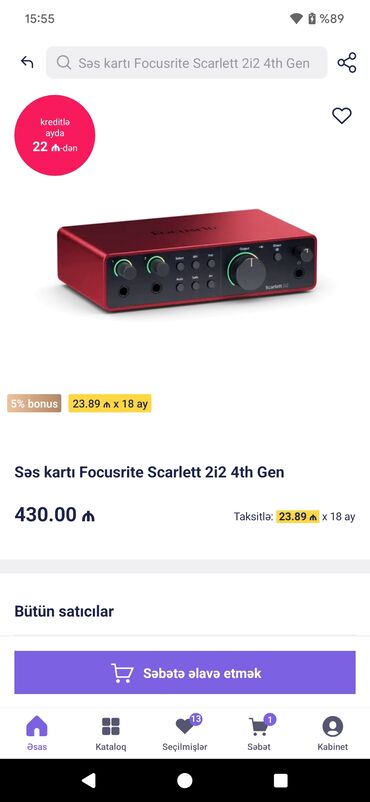 Focusrite Scarlett Solo Studio Səs Kartı Həm Mikrafon həm də istəlinən Toklu Musiqi aləti Qoşa Bilərsiz .Təzə dir Özüm Rusiyadan Gələndə Almışam İstifadə eləmədim Mağaza Qiyməti 430 azndır Pul lazımdı Deyə Satıram Burda da yaza bilərsiz