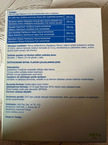 İstehsalçı: Vefa İlaç San. ve Tic. A.Ş., İstanbul, Türkiyə.
