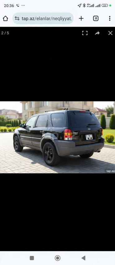 Ford Escape (Kuga) – qara rəngli, kompakt krossover Texniki və əsas xüsusiyyətlər: - Yanacaq tipi: benzin - Sürət qutusu: avtomat - Yürüş: 89 401 km (paneldə göstərilib) - Kuzov: 5 qapılı SUV/cros...