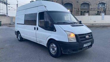 Ford Transit yük/ sərnişin mikroavtobusu - Kuzov: yüksək tavanlı, uzun baza ağ rəngdə - Ön radiator barmaqlığı və geniş ön şüşə yaxşı görünüş təmin edir - Salonda funksional panel: orijinal Ford m...