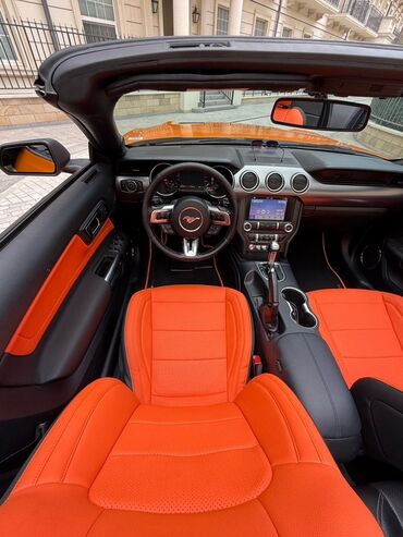 Ford Mustang Convertible – idman ruhlu kabriolet - Kuzov: kabriolet, 2 qapı, 4 yer. - Rəng: parlaq narıncı (qara detallarla). - Təkərlər: iri ölçülü qara yüngül lehimli disklər, aşağı profil təkər...
