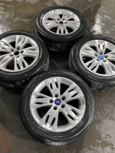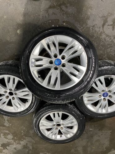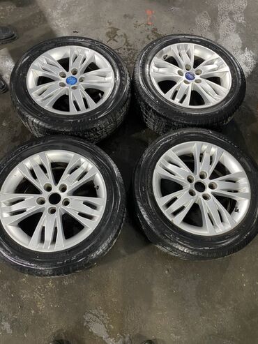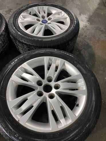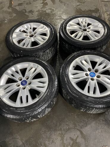 Ford orijinal yüngül lehimli disk və şin komplekti - Marka: Ford (orijinal mərkəz qapağı ilə) - Təkər ölçüsü: 18" sinifində çoxşüalı dizayn (foto əsaslı) - Material: Yüngül lehimli alüminium - Rən...
