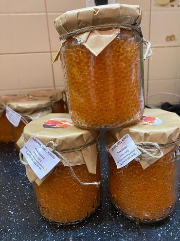 - Qablaşdırma: Şüşə bankalar, kağız qapaq örtüyü və kəndirlə möhkəmləndirilmiş; üzərində məhsul təsviri olan stiker və məlumat etiketləri.