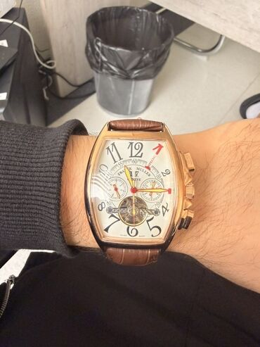 Franck Muller kişi qol saatı 3 gun geyinilib – Tonneau (yastıq) formalı korpus, qızılı tonlarda.